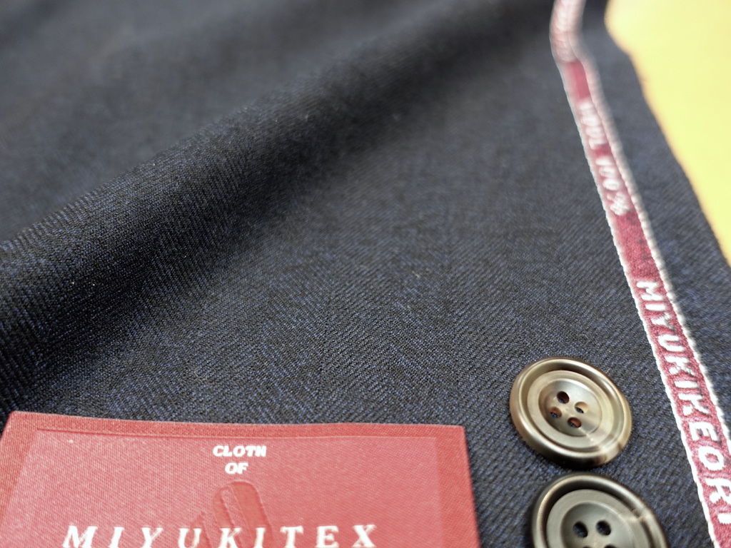 ミユキカメリアフィニッシュはsuper140`s?120`sの極めて柔らかい高繊度羊毛を1mあたり370g?340gたっぷり使って日本国内で織りあげ、フィニッシング、もしくは整理とも言われる仕上げ工程でツバキ油を使って洗い、柔軟性を増しています。そのコレクションに表面に起毛感のあるミルド仕上げが追加されました。複数の色を混ぜた糸を使っているムリネーのブルーなのでおしゃれ感のあるウインタースーツになります。スーツにそして、ジャケットとして着てコーディネートを楽しむセットアップスーツにも良い素材です。当店でその柔らかな手触りをお確かめくださいませ。
