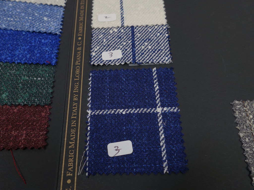 今週はじめ、ロロ・ピアーナの担当者に来店いただき、2019春夏のための一着ずつカットしてある通称着分(カットレングスともいう)を買い付けいたしました。