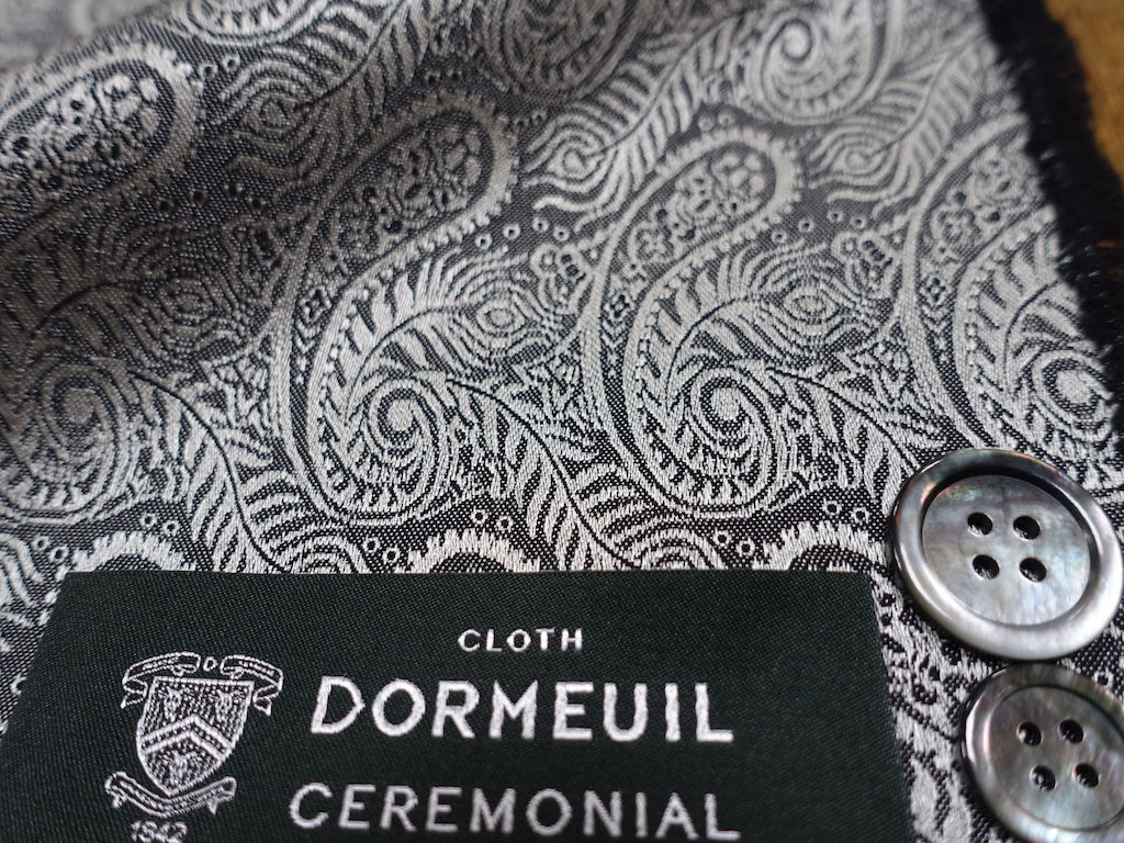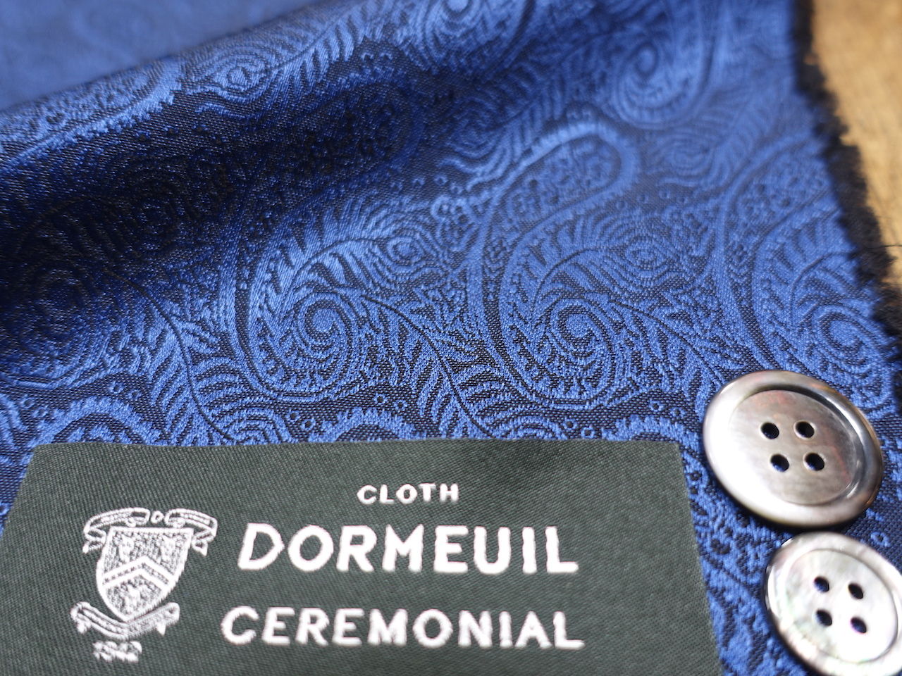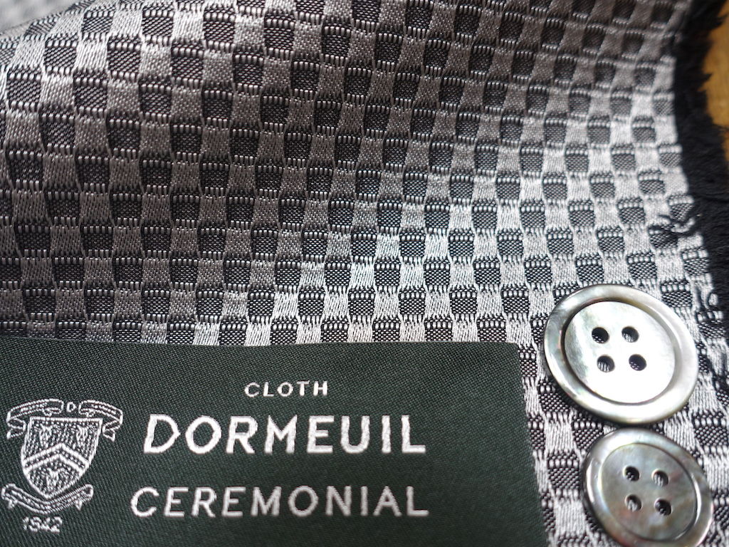 ドーメルから結婚式披露宴やパーティ、セレモニーなどをさらにエレガントに楽しめるジレのコレクションが入荷しました。その名も「セレモニアル」。ウール68%シルク32%でツヤ感あふれるジレになります。無地のネイビー、ブラックスーツの中にこのジレを着ると、まるでタキシードのようなフォーマル感を醸し出します。