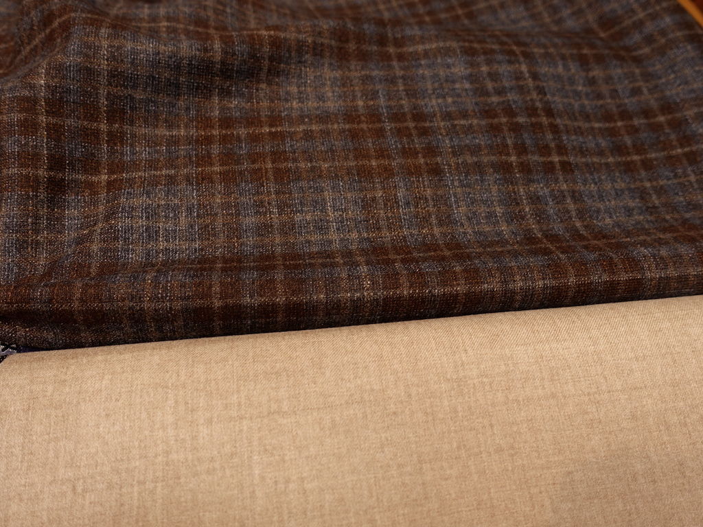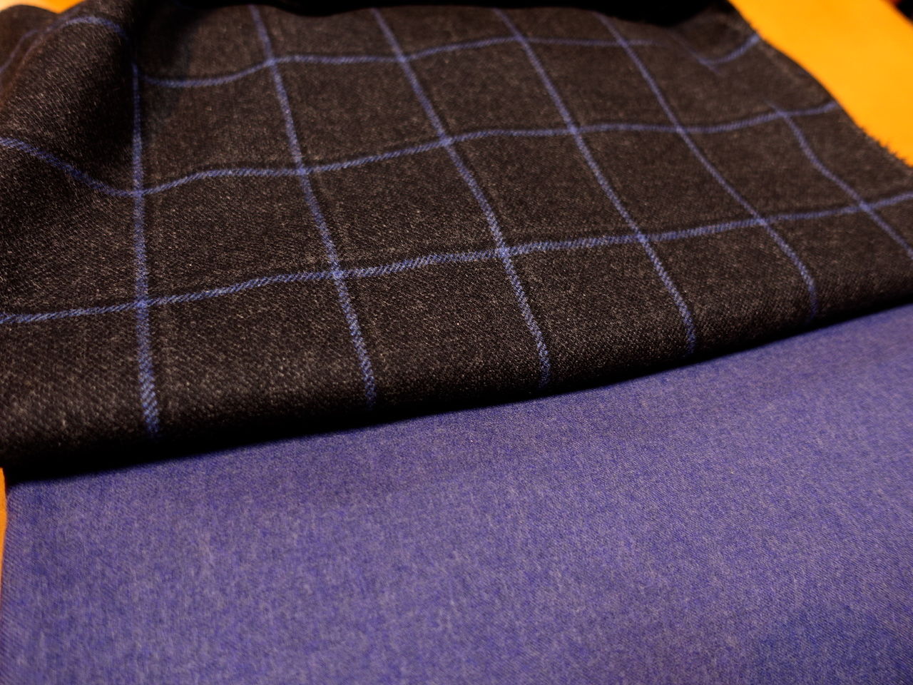 春夏に続いて秋冬もジャケット&パンツスタイルをオーダーいただくお客様が多くご来店いただいています。ジャケットにはチェック系を選び、パンツには無地を選ぶのが最近の傾向。パンツについては一番一般的なのはミディアムグレーやライトグレーですが(こちらなど)今回ご紹介するのは日本製の雄、御幸毛織が織り上げたウール100%のライトフランネル。柔らかい色合いでチェック系ジャケットに合わせやすいの1.アイボリー無地、2.ウインターサックス無地を選びました。秋のすてきなコーデになります。最近注目されている左右にアジャスターをつけたノーベルト仕様(プラス1000円)も楽しめます。