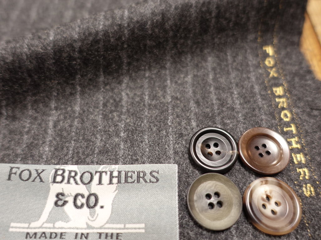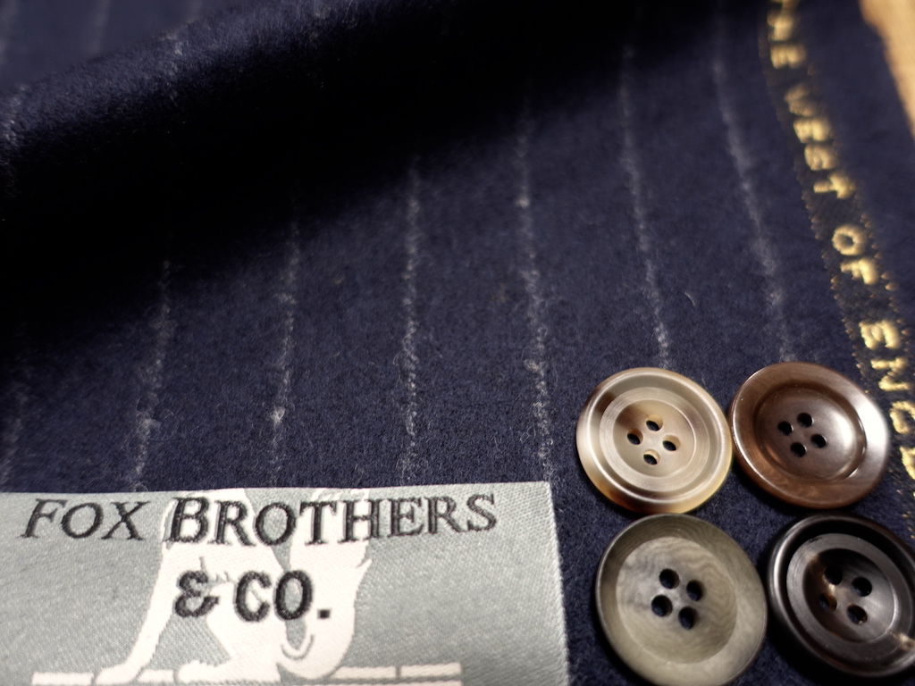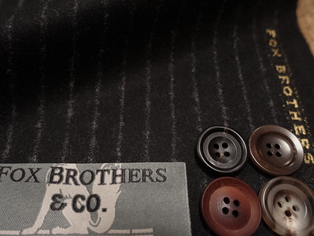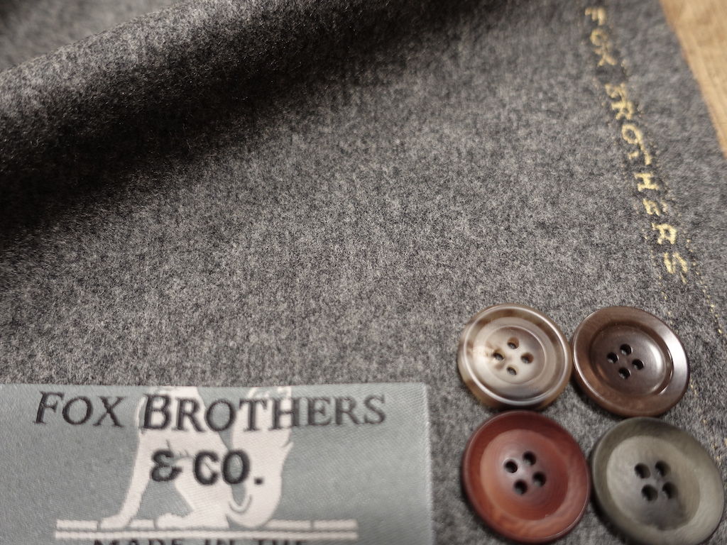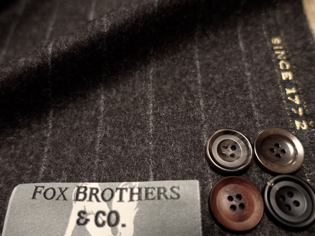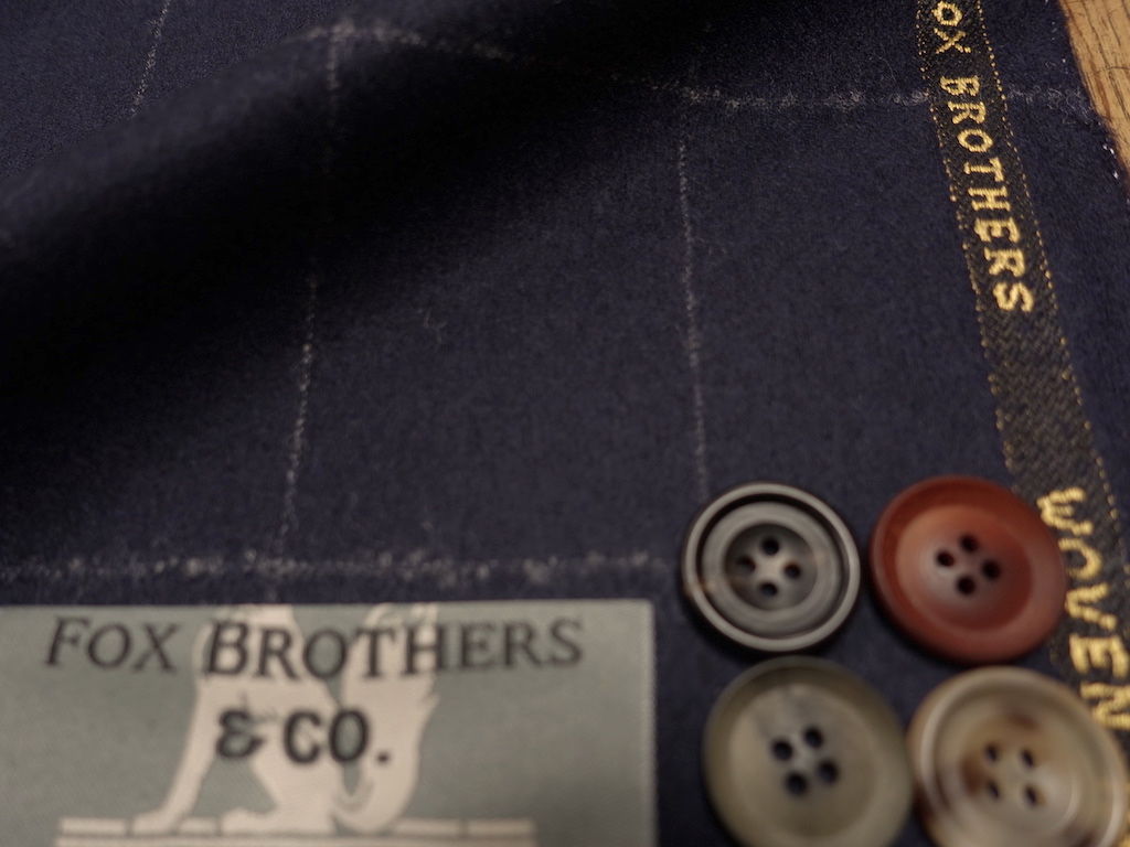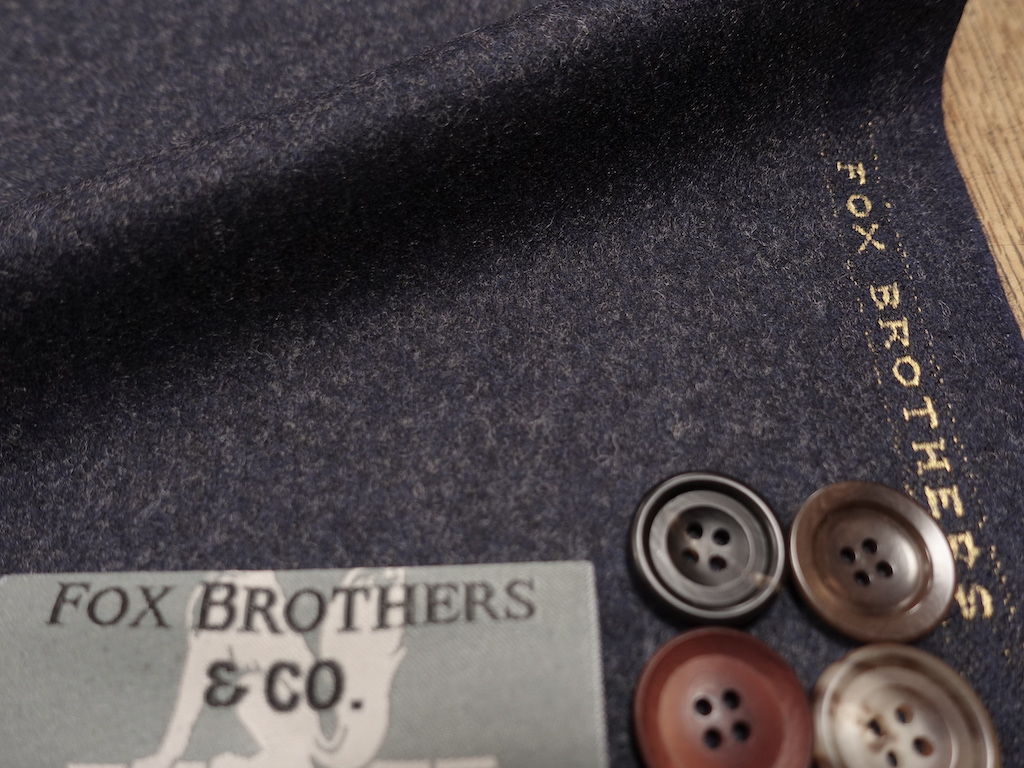 英国フランネルの本流、フォックスブラザーズのフランネルが入荷しました。低速織機でゆっくり織り上げた味わいある素材で、スリーピーススーツもしくは構築的なダブルブレストのスーツにもおすすめできます。ウール100%、目付はネイビーウィンドペンのみ315g/mでその他は385g/mと十分しっかり感があり、英国紳士服の雰囲気のすきなお客様におすすめのフランネルです。
