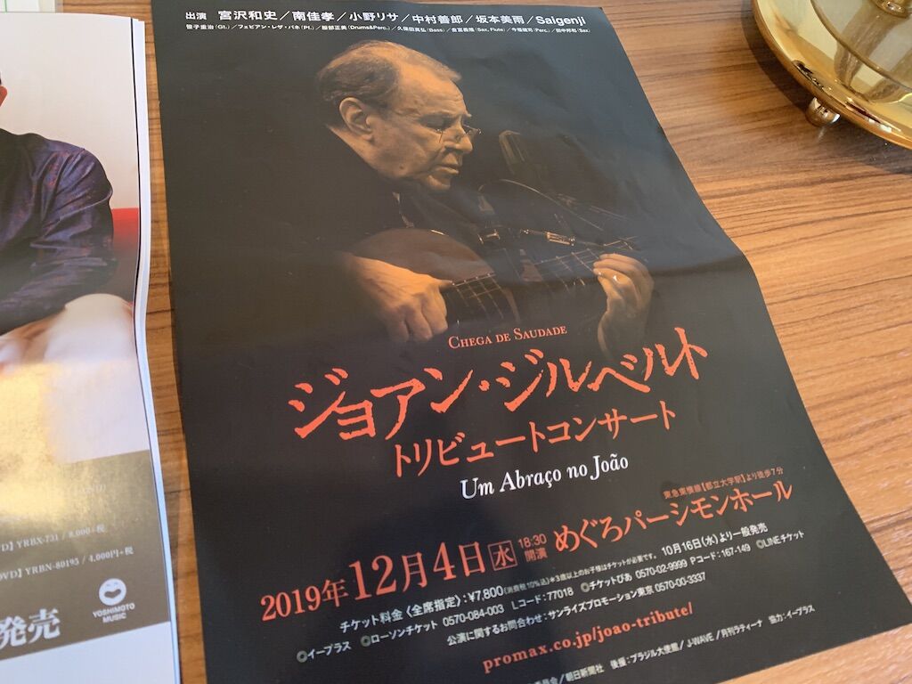 夜には7月に旅立ったジョアン・ジルベルトトリビュート・コンサートをめぐろパーシモンホールに聞きに行く。ステージをみながら、頭の中ではずっと2006年に最前列近くで見た憧れのジョアン・ジルベルトのライブのことを反芻していた。自分一人の歌とギターというミニマムな構成で完璧な音楽世界を構築したジョアン・ジルベルトの世界に二度も直接触れた思い出があることを誇りに思いながら。