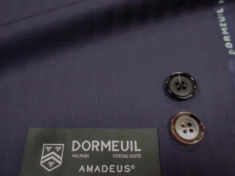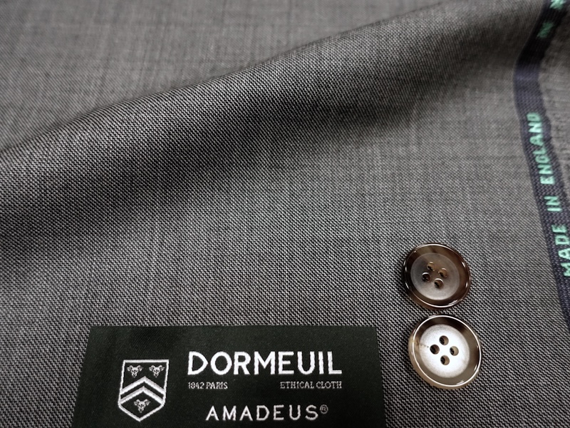 秋冬の代表的クラシックスーツ素材であり、ドーメル社の最も人気のあるスーツコレクション、アマデウスは美しい艶を持つウーステッドです。英国ヨークシャー地方に位置するドーメルマニュファクチャリングで織り上げられた100%エクストラファインウールは、スーパー表示はしていませんがスーパー100相当で1mあたり310gの目付けは秋冬に一番使いやすいスーツに仕立て上がります。オーダーメイドスーツの象徴である美しいツヤはアマデウスのアイデンティティ。当店標準装備の本バス毛芯仕立てはこのツヤをさらに美しく見せる効果があります。仕上がったスーツの品格は高く、威厳があります。