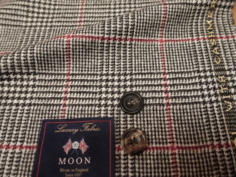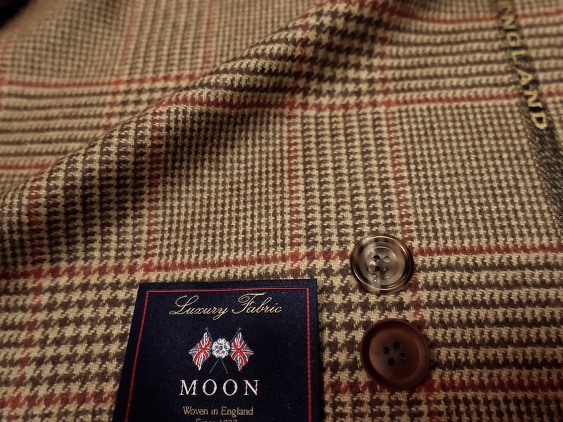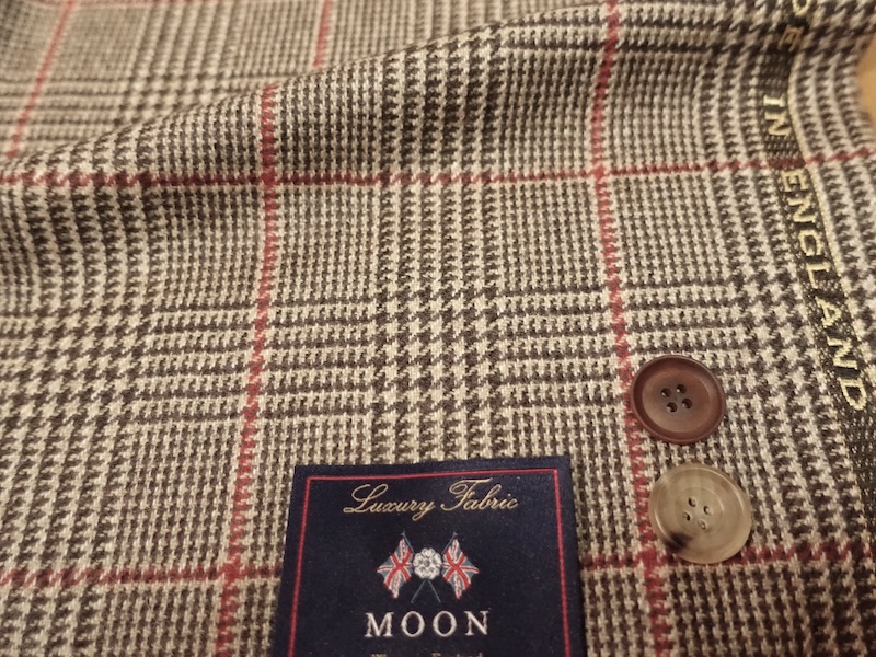 ジャケット素材を得意とする英国ムーン社の手触りソフトでもっちりしたウール95%&カシミア5% 1mあたり320gの秋冬着られるソフトツイードです。ナチュラルカラーのグレンチェックにオーバープレイドが入った英国クラシックテイストのジャケットが仕上がります。