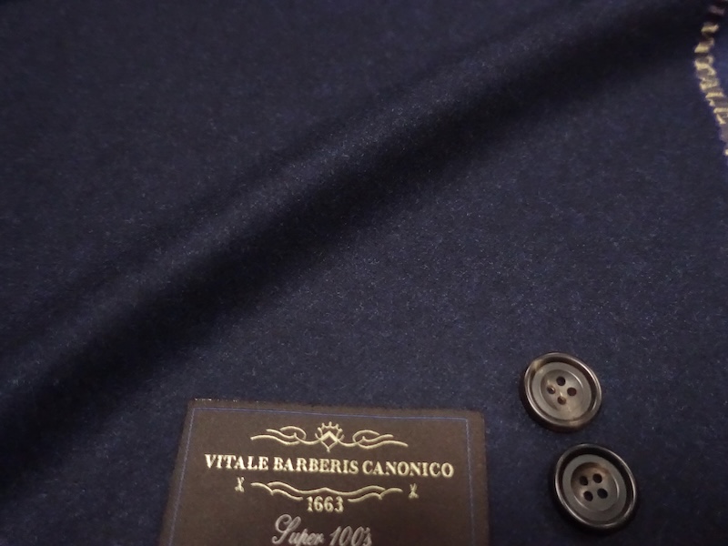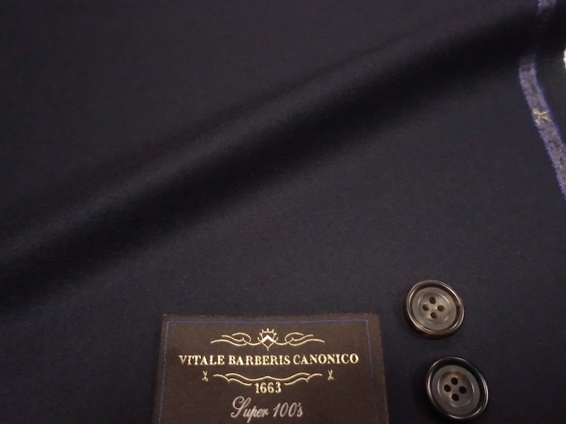 ネイビー無地のジャケット/ブレザーは永遠のアイテム。このヴィターレ・バルベリス・カノニコ社 ウールンフランネルでダークネイビー無地ジャケットも承ります。オーダージャケット価格74,000円(税込)。