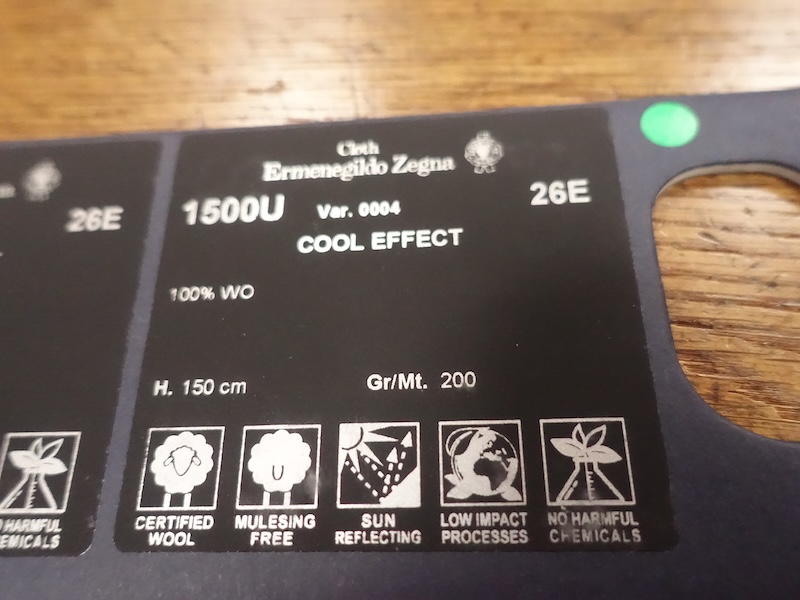 ただ残念なことに五年ほどゼニアのオーダー用のコレクションから外れていました。しかしこのたびイタリア・エルメネジルド・ゼニア社のフルコレクションにクールエフェクトが入っていましたので、当店はネイビー無地、ダークネイビー無地、アイアンブルー無地の3種を反で別注いたしました。