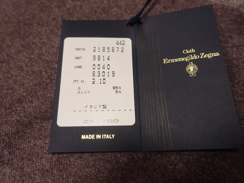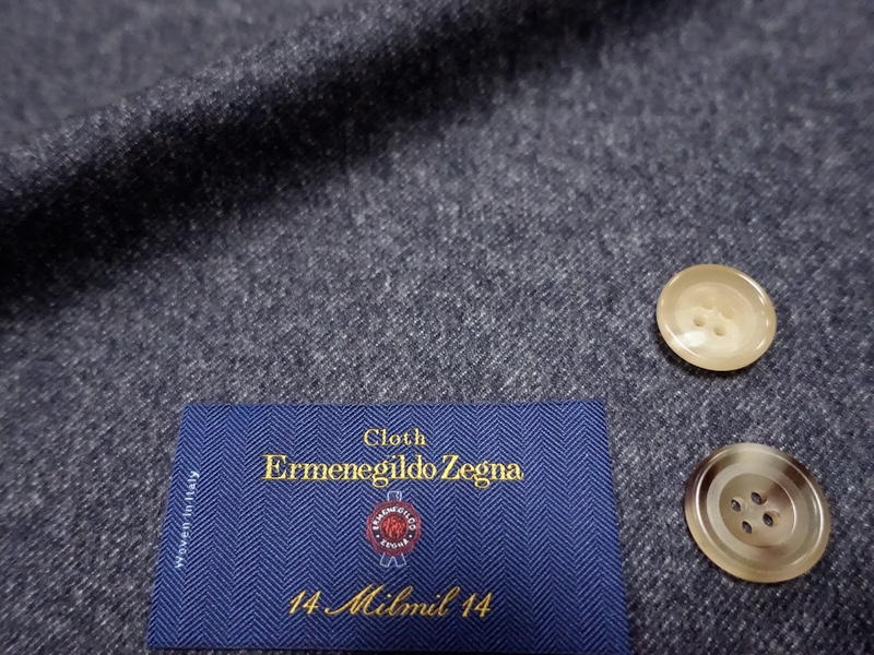 オーダーサロンタナカのエルメネジルド・ゼニア素材はすべてイタリア・エルメネジルド・ゼニア社の日本現地法人ゼニアジャパンから入荷の正規商品です。縫製はすべて日本製。本バス毛芯仕様か軽量毛芯かで選択いただけます。