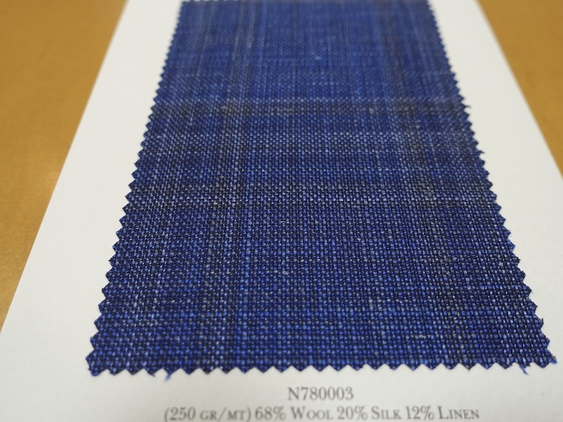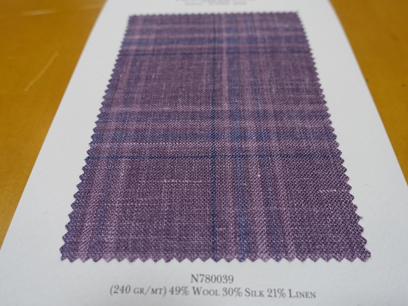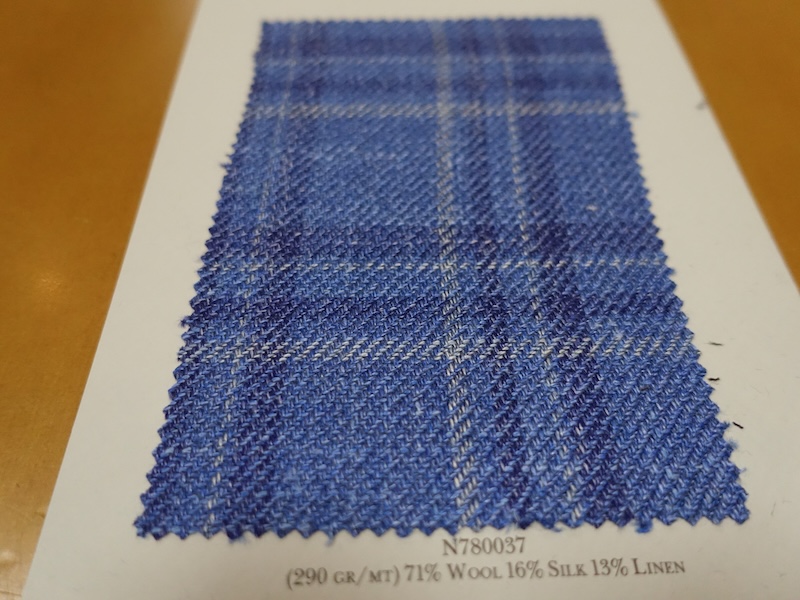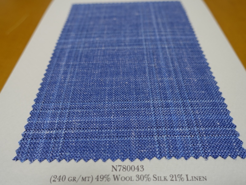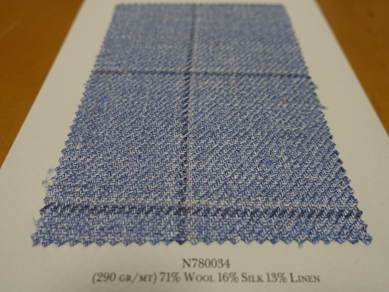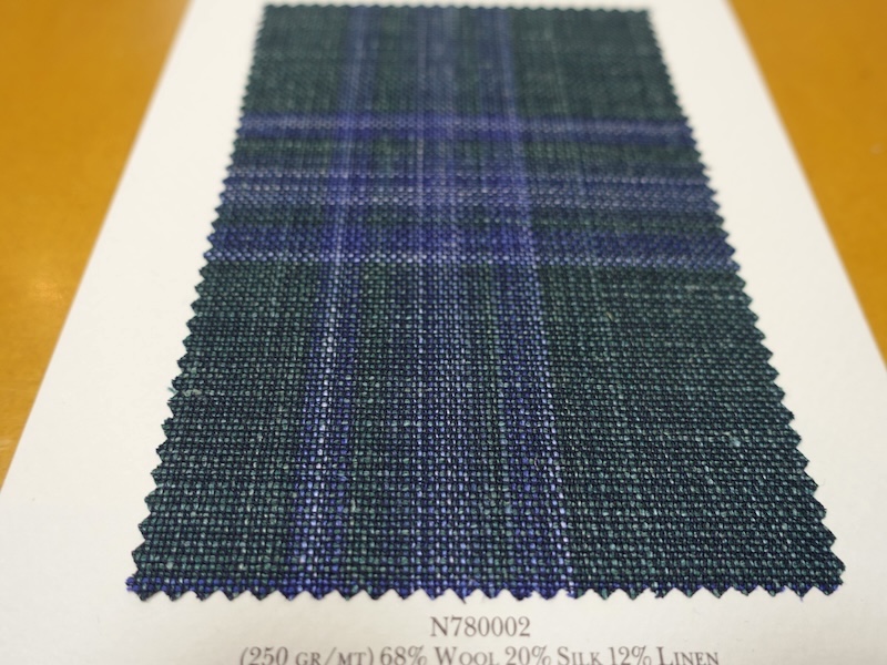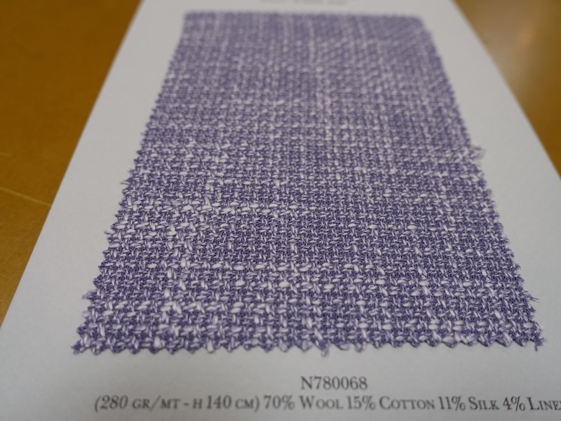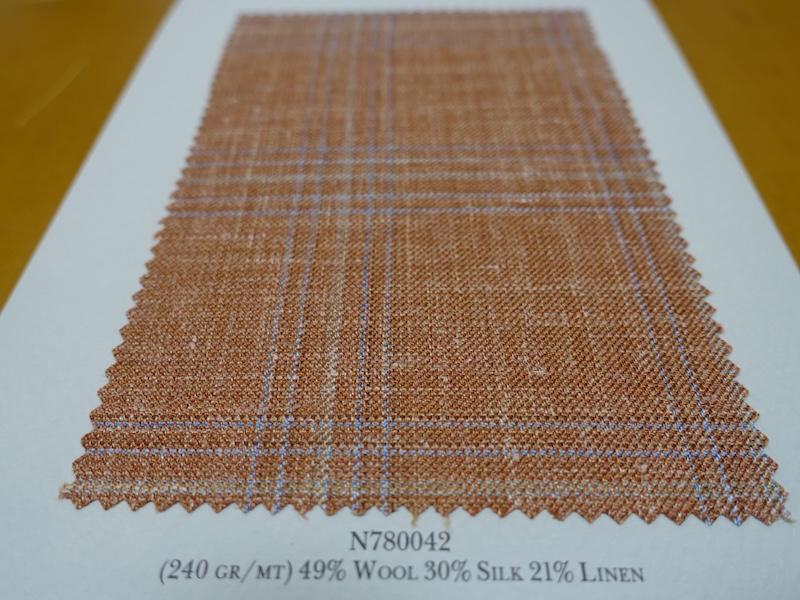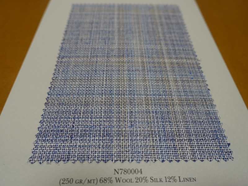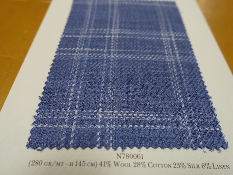 これらの画像のジャケット素材はすべて「SUMMER TIME 」のタグが付属し、通常価格116000円(税込)トランクショー特別価格でオーダージャケット価格99,000円(税込)となります。 トランクショー以前なら、お電話でもその価格でオーダーいただけます。ただしサイズ58以上の体格のいいお客様は別にお見積りいたします。