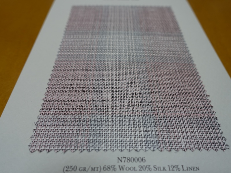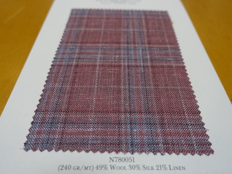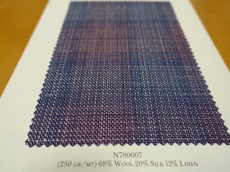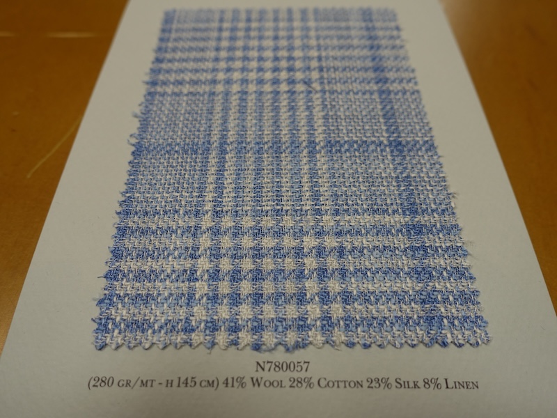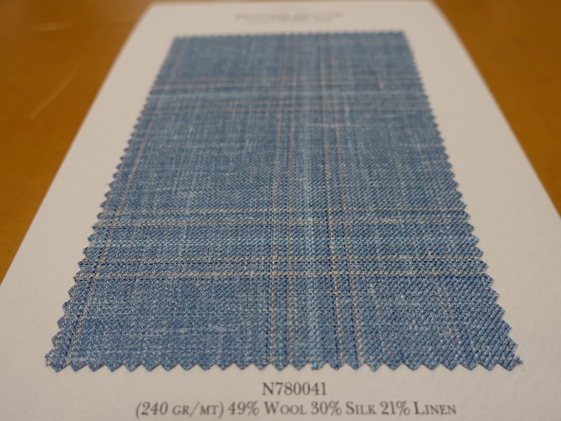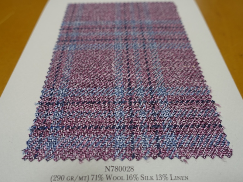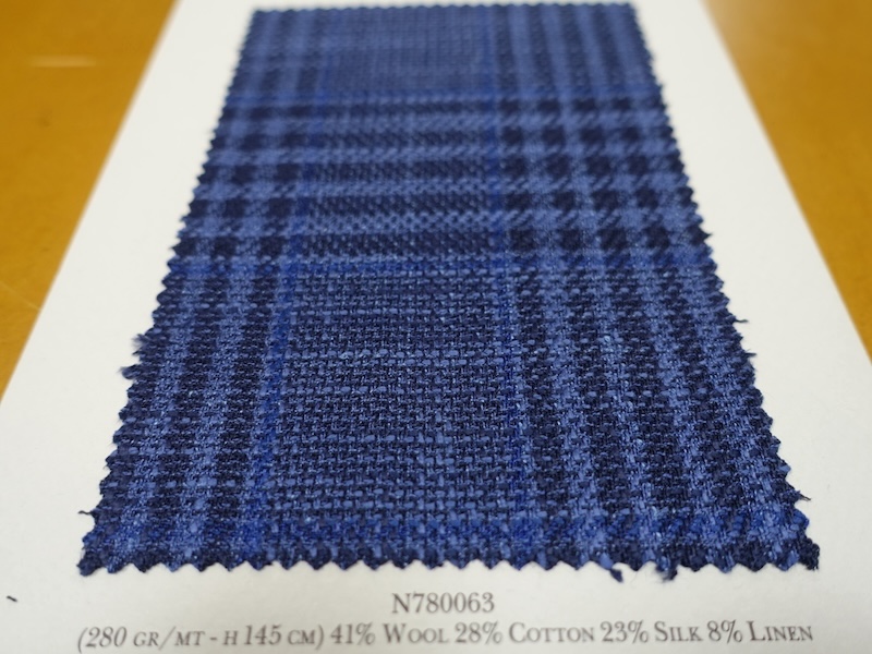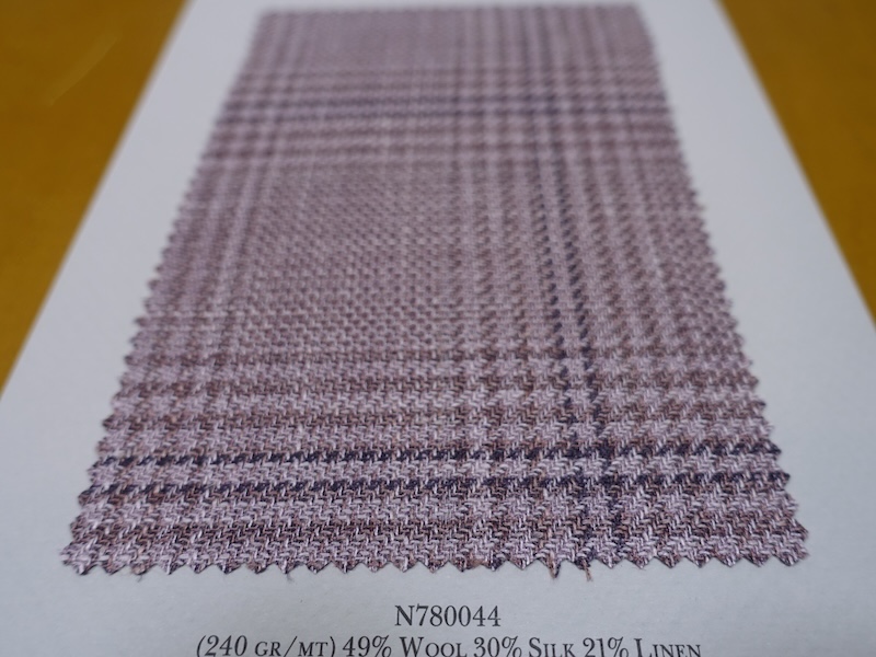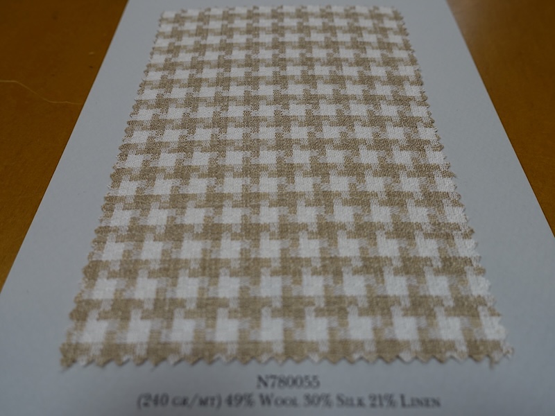 これらの画像のジャケット素材はすべて「SUMMER TIME 」のタグが付属し、通常価格116000円(税込)トランクショー特別価格でオーダージャケット価格99,000円(税込)となります。 トランクショー以前なら、お電話でもその価格でオーダーいただけます。ただしサイズ58以上の体格のいいお客様は別にお見積りいたします。