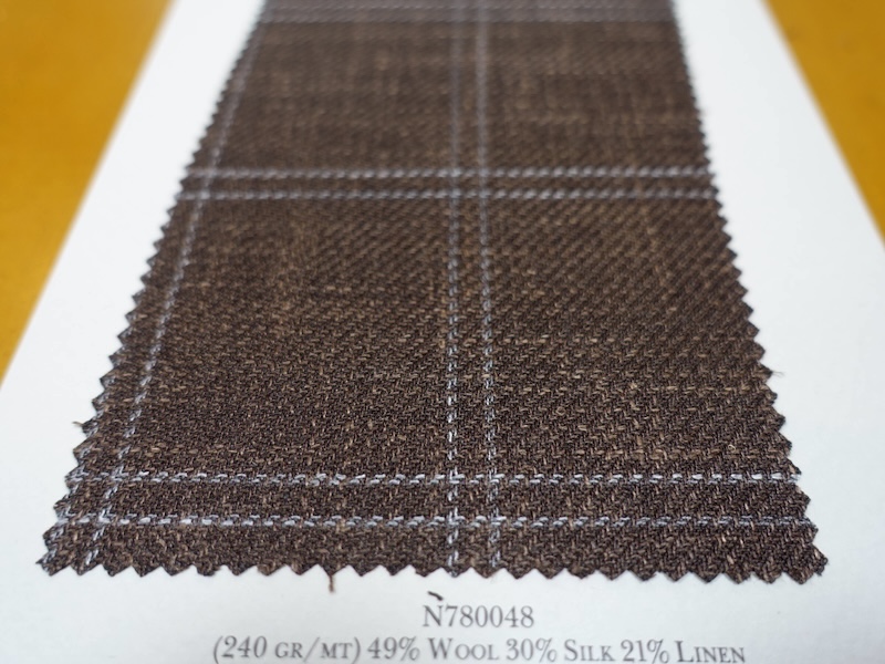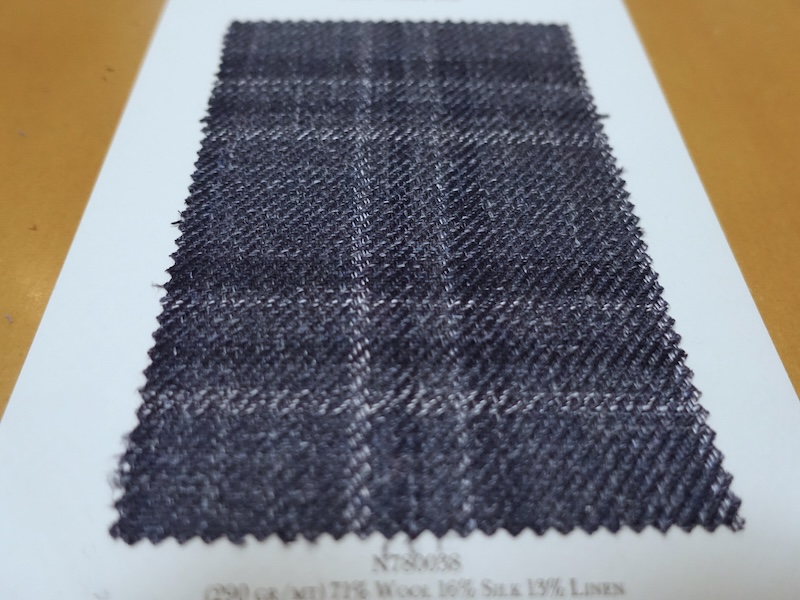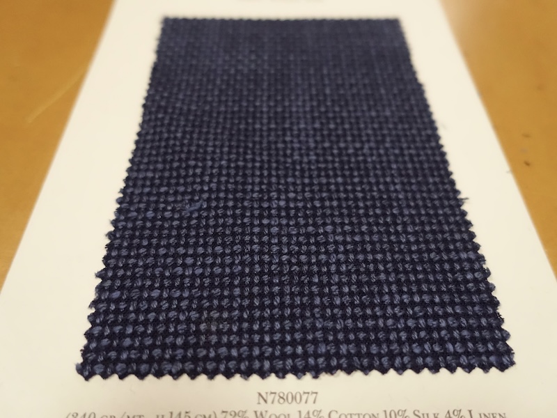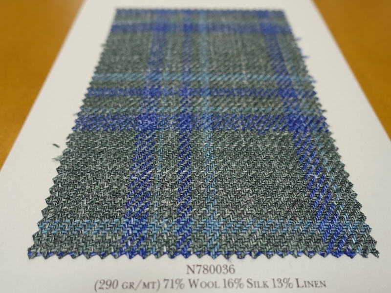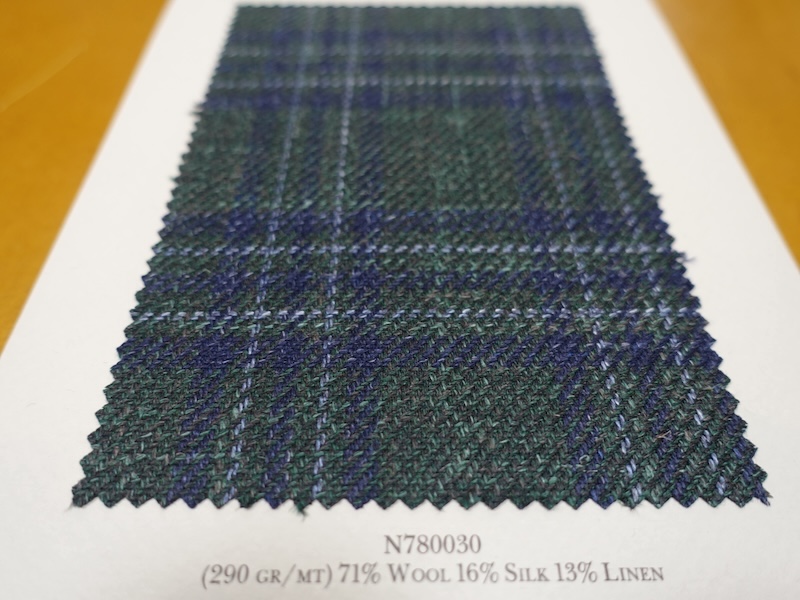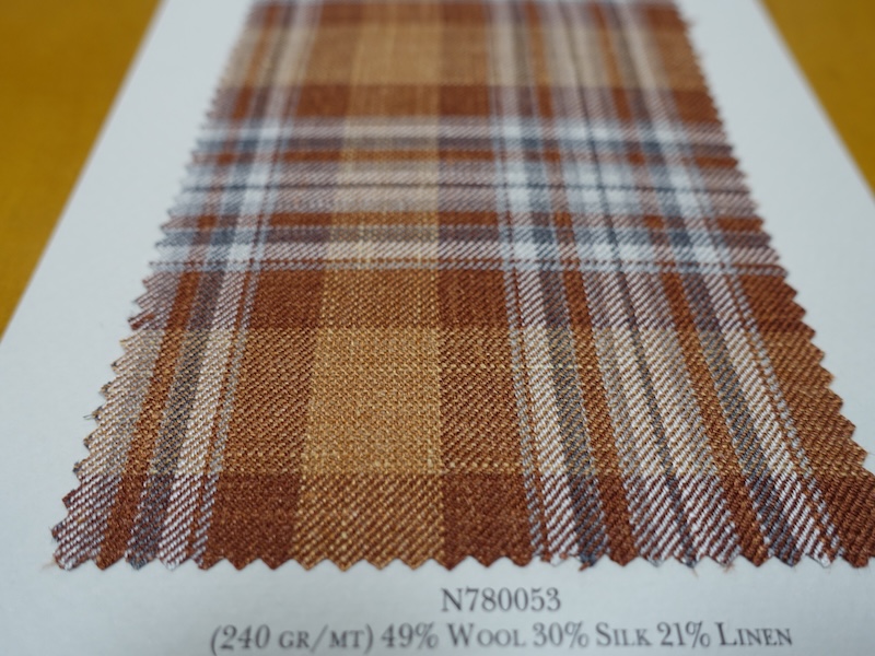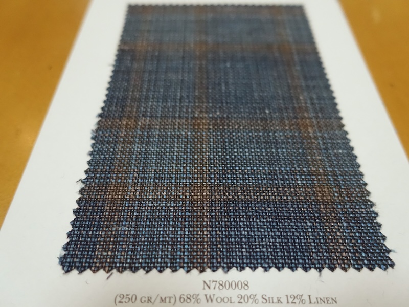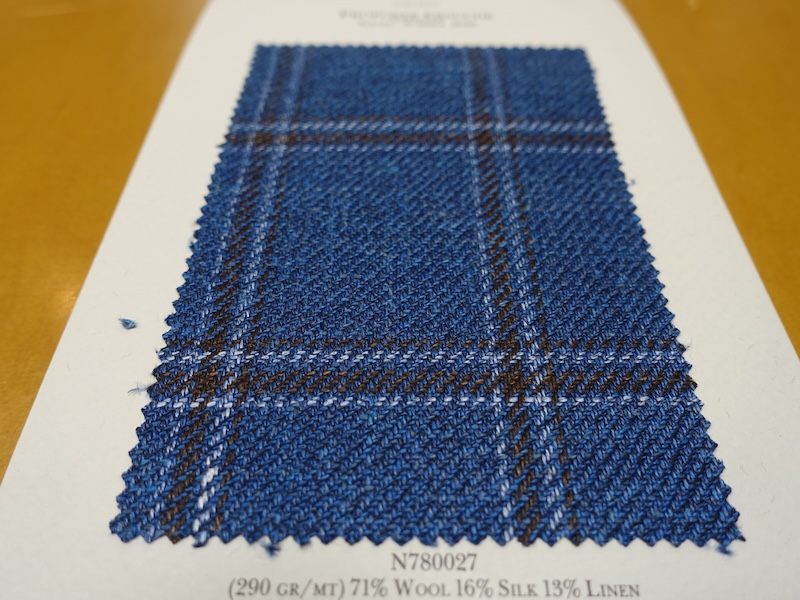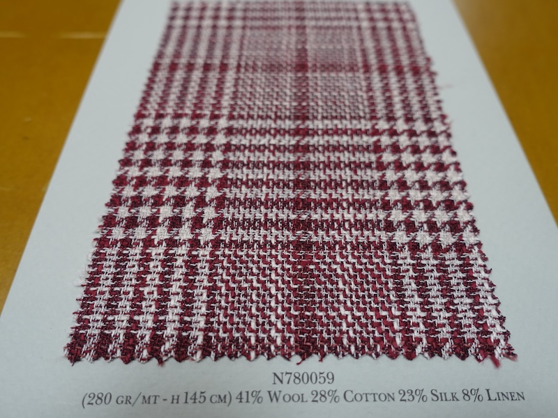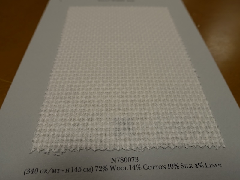 これらの画像のジャケット素材はすべて「SUMMER TIME 」のタグが付属し、通常価格116000円(税込)トランクショー特別価格でオーダージャケット価格99,000円(税込)となります。 トランクショー以前なら、お電話でもその価格でオーダーいただけます。ただしサイズ58以上の体格のいいお客様は別にお見積りいたします。