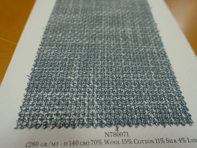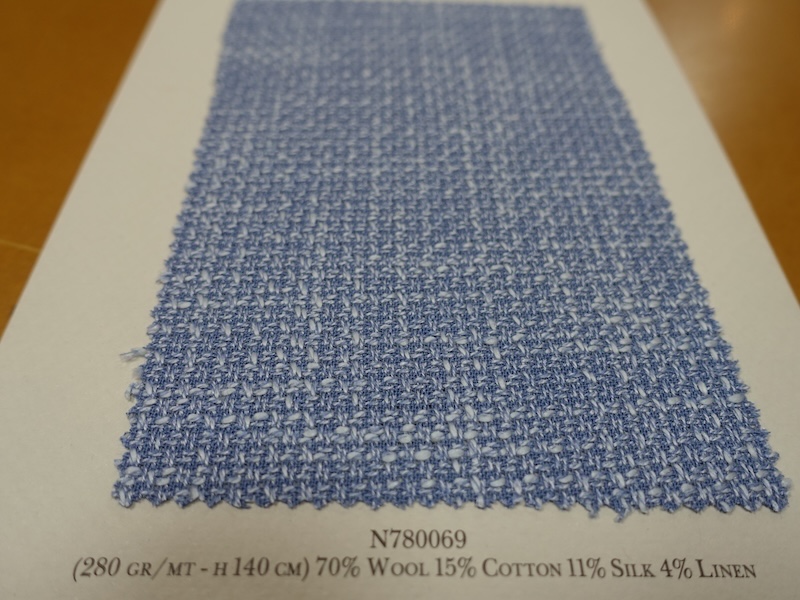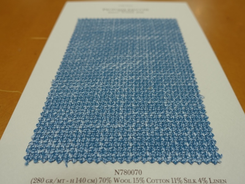 ウール主体のリネン混で平織りの爽やかな印象のロロ・ピアーナ定番ジャケット素材です。いままでの傾向のデザインに加えて、今年はN780004 N780005 N780006のようにきれいなライトカラーが追加されました。
