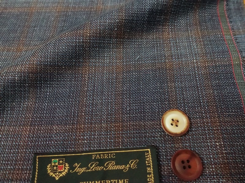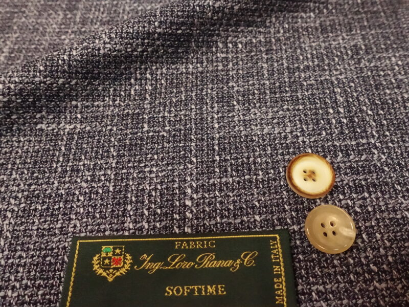 ロロ・ピアーナ社の春から夏のジャケットの定番というべきウール、シルク&リネンミックス素材。すべてに高級素材を使うロロ・ピアーナらしい世界観を持つジャケット素材です。カジュアル感を演出するためアンバイ仕立てかアンコンがおすすめです。