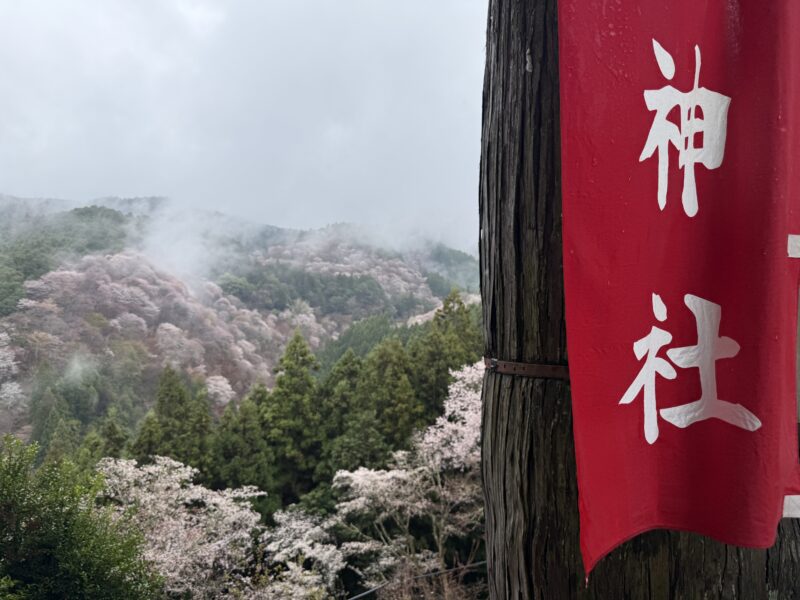 そこから谷を下ってつるつるすべる山道でなんども転びそうになりながら吉水神社にたどり着き、一目千本の桜を見たときにはここにまた戻ってこれてよかったと感慨ひとしおでした。吉水神社も南朝の御所があった場所で歴史の舞台です。吉野の桜はやはりいにしえの人の魂がやどる言わば聖地に咲く桜。美しさのなかに世の無常、もののあわれを思う鎮魂の桜でもあります。
