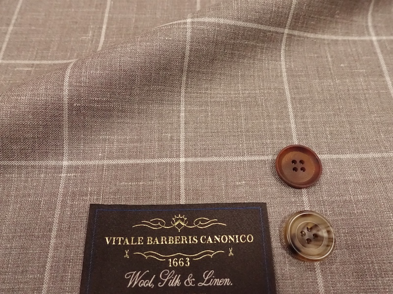 スーツをオーダーいただき、仕立て上がる頃はもう夏です。そんな夏のスーツスタイルを楽しむ、おしゃれエンスーなお客様に支持されているのはヴィターレ・バルベリス・カノニコ社のウール&リネンミックス。今年は残念ながら取引先がウールリネンのストックはなぜか控えめ。ですが当店はちゃんと買付しました。下記はすべて一着ずつの在庫です。オーダーご希望のお客様はなにとぞお早めのオーダーをおすすめいたします。縫製仕様はアンバイ、もしくはアンコン仕立て(52以上は要尺の関係で出来ません)がおすすめです。